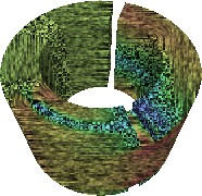 Dense visualization of flow at the boundary surface of a ring at fast frame rates (AVI format). | ||||||