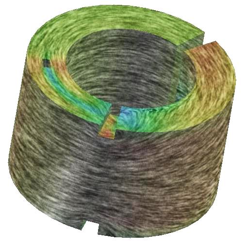 An example of circular flow at the surface of a ring for comparing FlowVis classifications: (left) direct visualization by the use of arrow glyphs (middle) texture-based by the use of LIC and (right) visualization based on geometric objects, e.g. streamlines. |