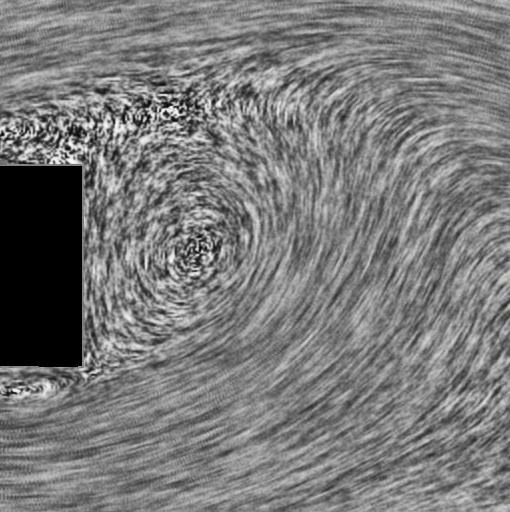 Results from A Texture-Based Framework for Spacetime-Coherent Visualization of Time-Dependent Vector Fields, by D. Weiskopf, G. Erlabacher, and T. Ertl. From left to right: UFLIC, LEA, DLIC, Unsteady Flow Convolution with and without a velocity mask. Click on the images for an animation of the result. | ||||||
